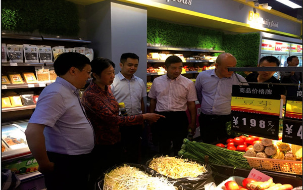 省社黨組成員機(jī)關(guān)黨委書記周敏泉和四川省農(nóng)產(chǎn)品經(jīng)營集團(tuán)董事長(zhǎng)總裁楊燦明在公司城市生活店調(diào)研